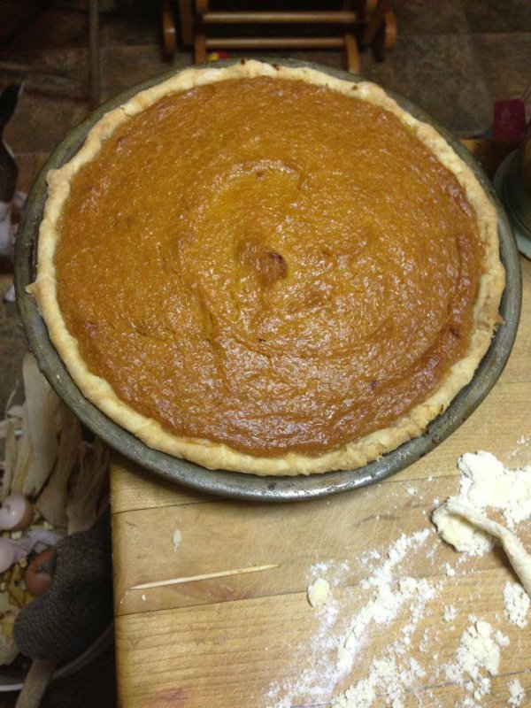 Bake at 350˚ for 55 to 60 minutes, or until knife inserted in center comes out clean. Pie will puff up like a souffle, and then will sink down as it cools.